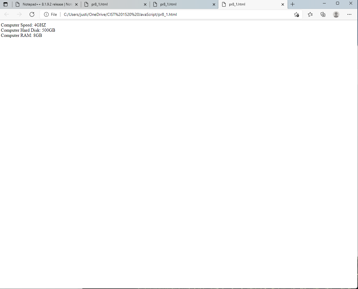 CIST1520 JavaScript Chapter 8